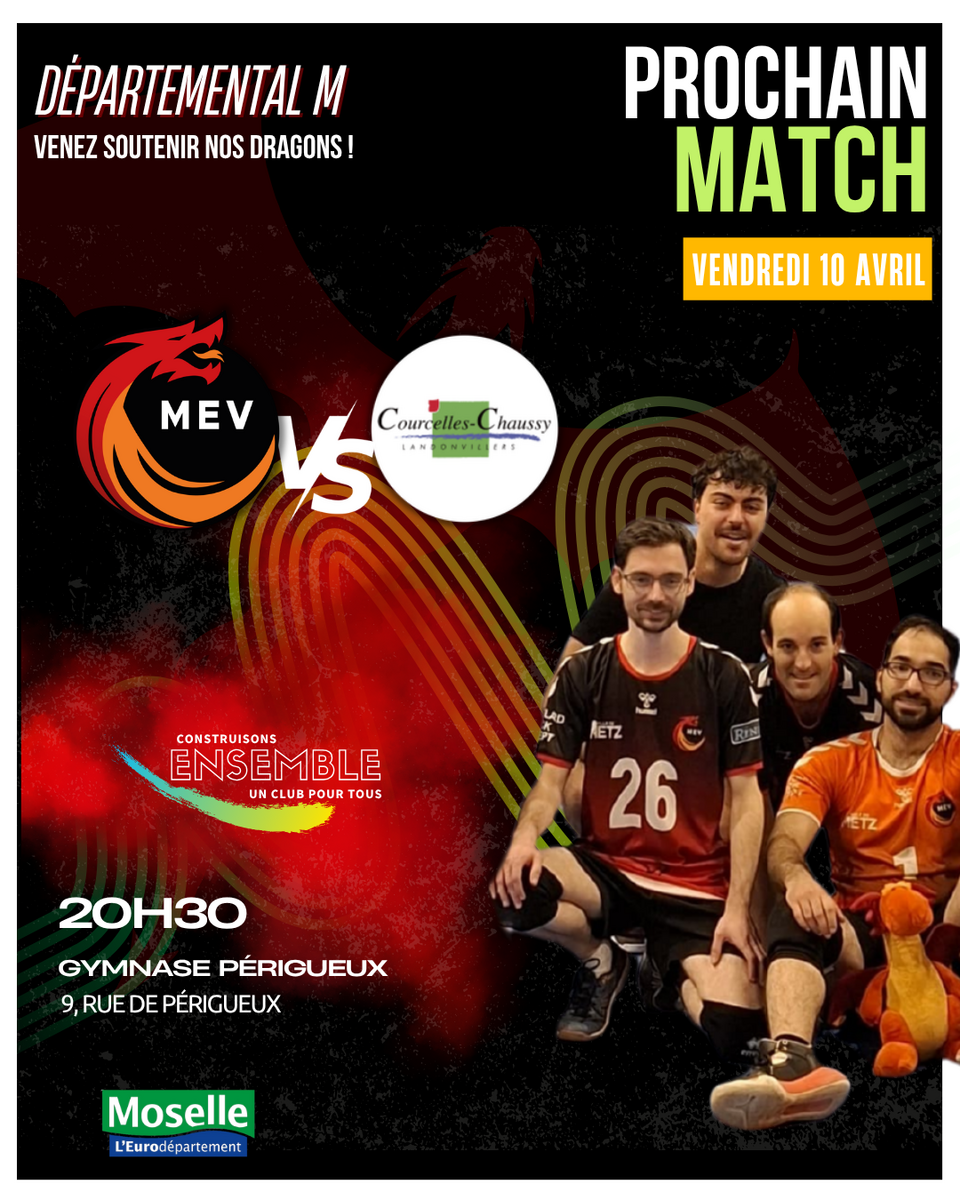 Ce vendredi 10 avril à 20h30, nos Dragons accueillent Courcelles-Chaussy 1 au gymnase Périgueux, à l’occasion du match reporté du mois de janvier.