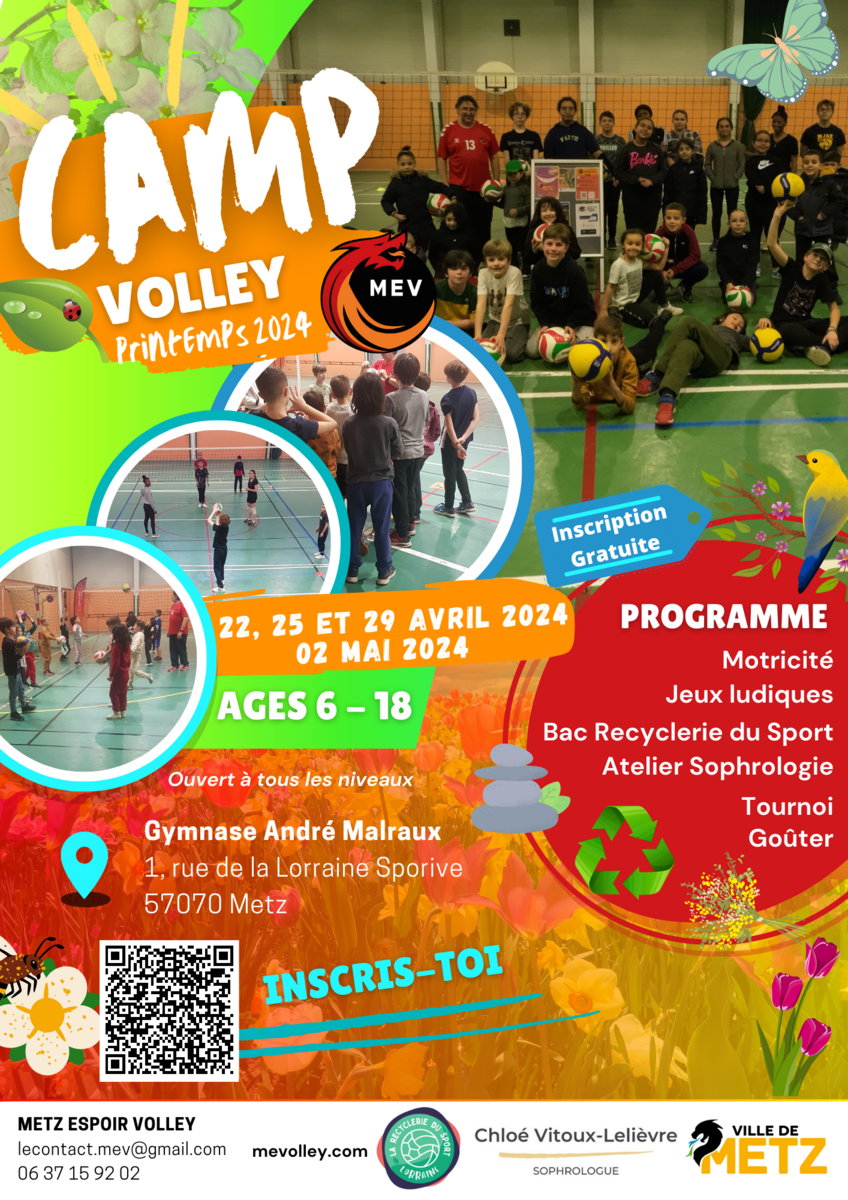 En partenariat avec la Ville de Metz, nous organisons des animations volley durant les vacances scolaires pour les jeunes de 6 à 18 ans. Au programme, retrouvez de l’initiation aux gestes de bases, du jeu libre, goûter, pour les plus jeunes des jeux ludiques.