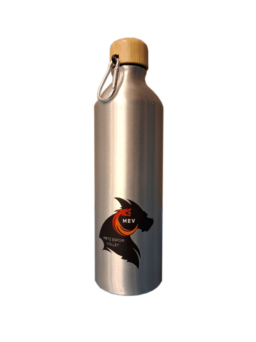 Gourde en aluminium 800 mL, caractèristiques : légère, antichoc, à laver régulièrement, isotherme sur quelques heures en fonction de la météo.